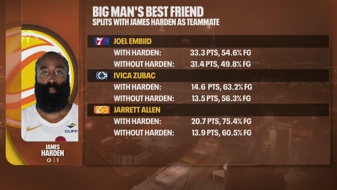 与哈登搭档时: 20.7分,投篮命中率75.4%